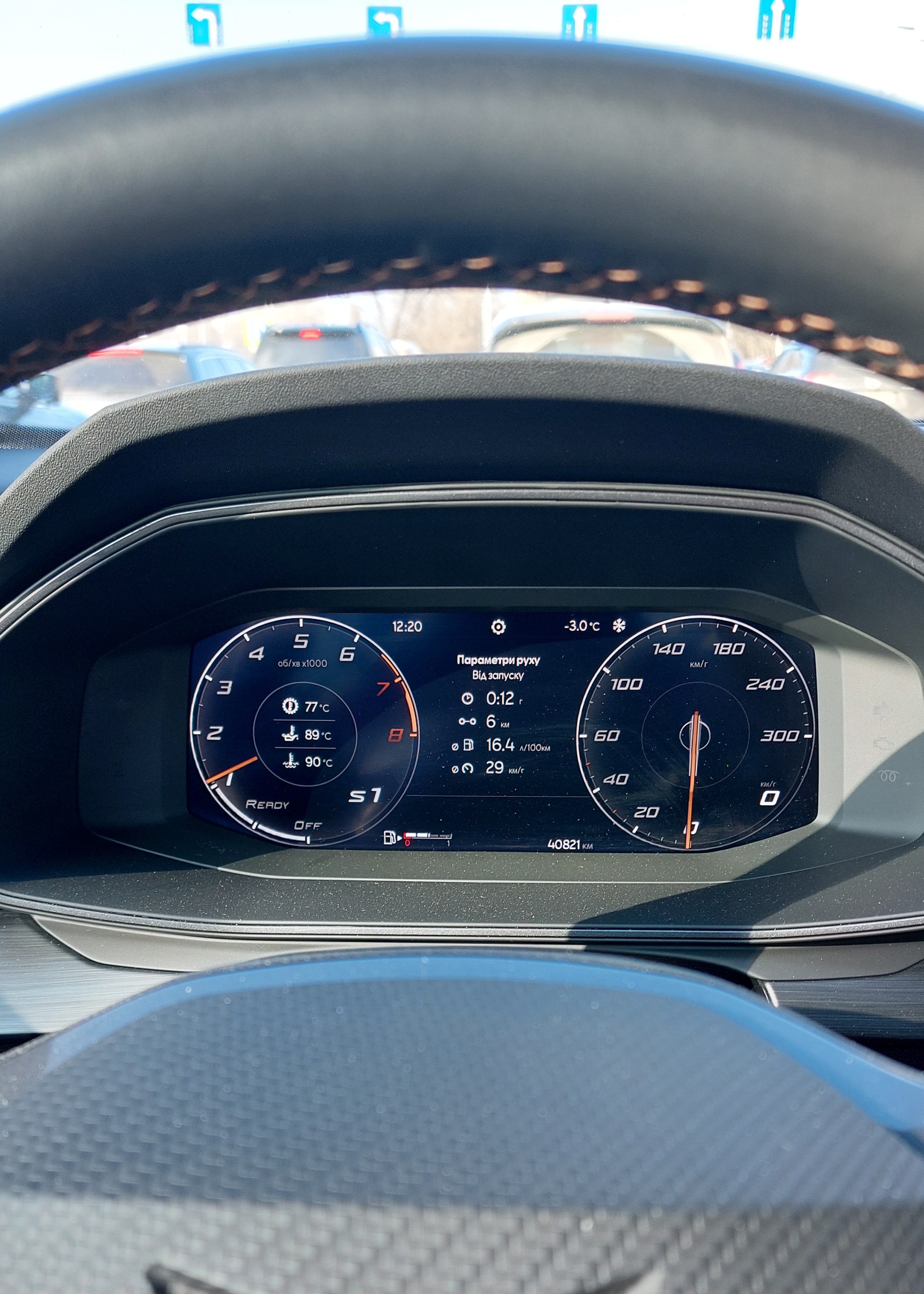 Великий тахометр по центру, швидкість на heads up дисплеї, мінімум зайвої фігні перед очима. Дуже круто.