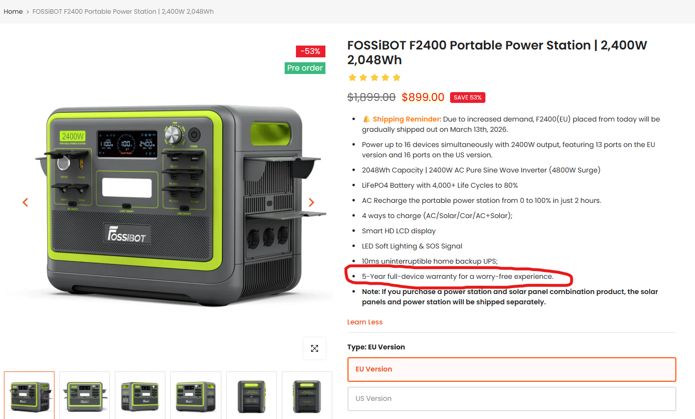 Про 5-річну гарантію на Fossibot, що придбаний у європейському онлайн-магазі.