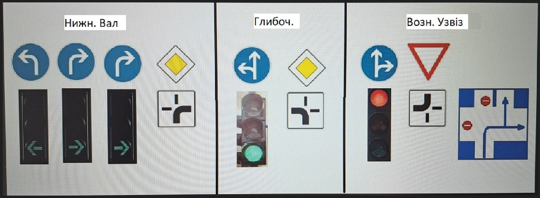 Вчера в Цюрихе видел светофор с вот такими стрелками. Люди не постеснялись нарисовать их наклонными. Это я к тому, что на Вознесенском Спуске подобным образом можно указать, что ехать нужно на Верхний, а не Нижний Вал.