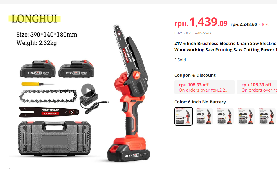 дякую за наводку. батьку куплю в подарунок. 1600 грн PKA22, безщітковий двигун, шина 15 см. в комплекті акб 2а, зарядний, дві шини, два цепка.
