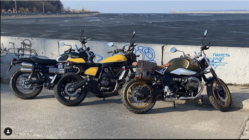 ніт. саме про скремблер, коли сидиш прямо над переднім колесом, он на фото жовтий, між моїм і бонневілем)