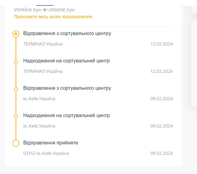 А що, на той термінал тільки київські посилки потрапляють?