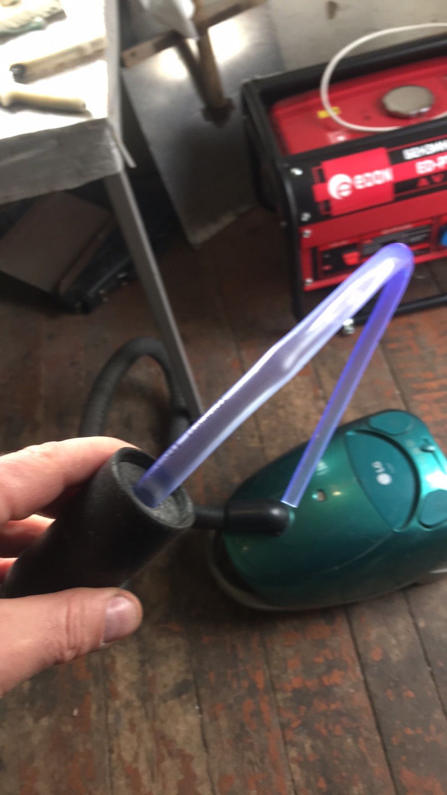 Так, взяв поліетиленовий шланг 8 мм внутрішнім діаметром (бо 10 не лізла), підібрав пробку в шланг пилососу, зробив в ній отвір під цей 8 мм шланг и уперьод.