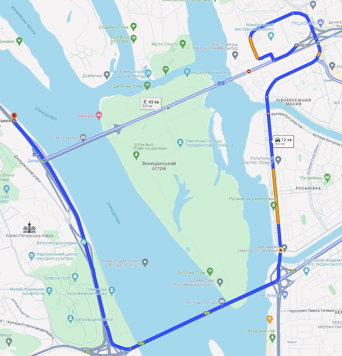 Рух транспорту буде обмежений другою, третьою і четвертою смугами в напрямку станції метро «Почайна». Проїзд організують двома відокремленими смугами протилежною стороною мосту в напрямку житлового масиву Троєщина.