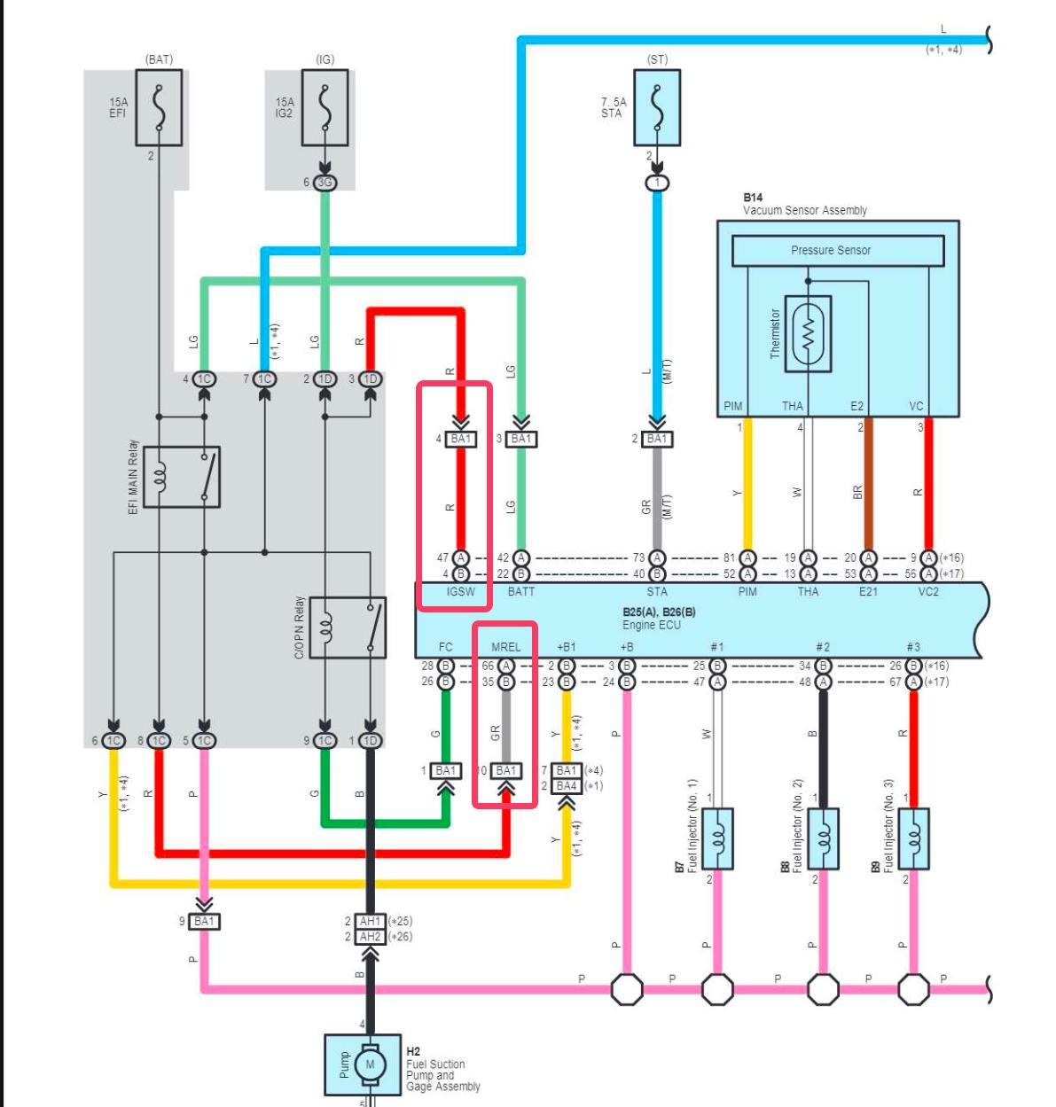 У цих авто є впаяні 4 в 1 реле у блоці запобіжників під капотом. Серед них головне реле та реле паливного насосу. Коли вмикаєш запалення, головний комп отримую сигнал +12V і подає на головне реле -, після чого все починає працювати. В мене як раз не доходив сигнал від головного компу до реле (у блоці запобіжників правий нижній розєм червоний провід це +12V на головний комп, сірий над ним - від компа до головного реле)