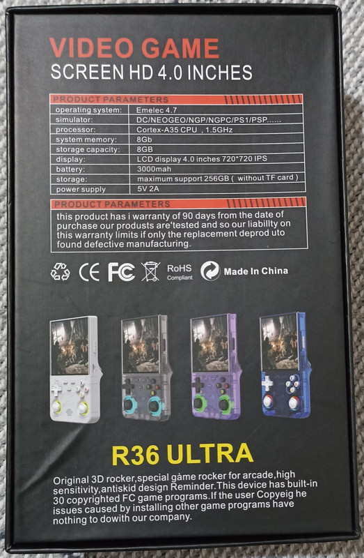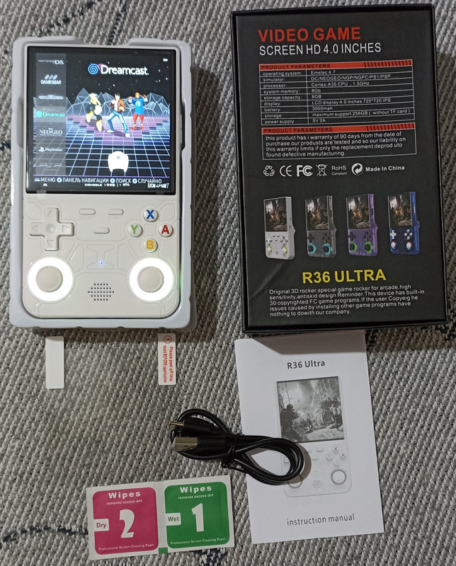 в наличии: Портативная игровая консоль ретроигр R36 Ultra 64GB Экран IPS: 4" 720x720 (очень яркий и сочный с высокой детализацией) Процессор RK3326 Quad-core Cortex-A35 1.5GHz, видеоядро Mali-G31MP2 Поддержка эмуляторов игр от: PS1, PSP, Sega Dreemcast, Sega Saturn, NDS, Nintendo 64, Sega Megadrive, NES (dendi), Super Nintendo, NEOGEO, GBA, GBC, GB и др под завязку забита играми, по запросу сделаю сборнкик от интересующих приставок Операционная система Emuelec 4.7 , есть возможность удалять и записывать игры самостоятельно Новая в коробке, с картой памяти 64Гб - 1800 грн
