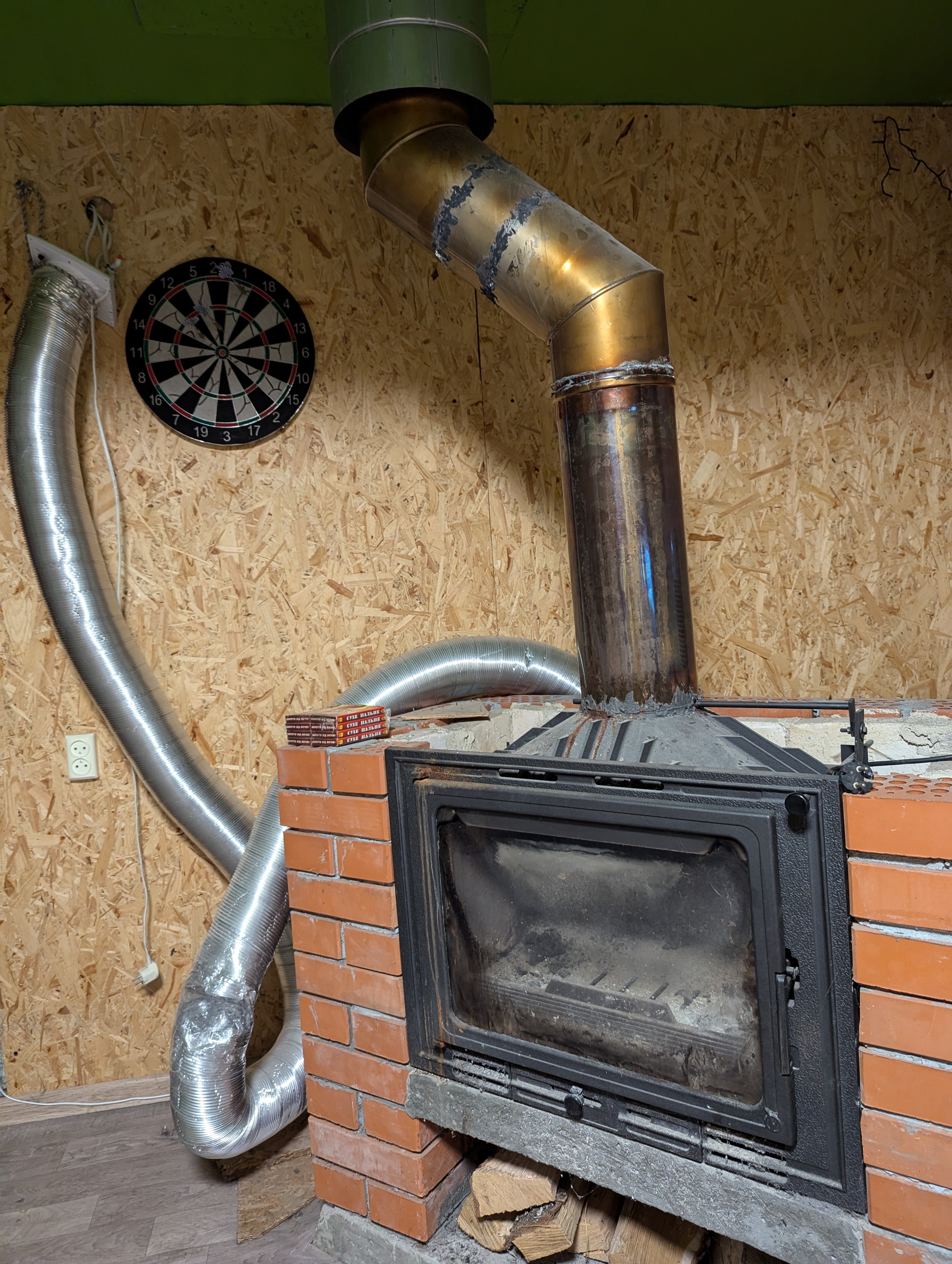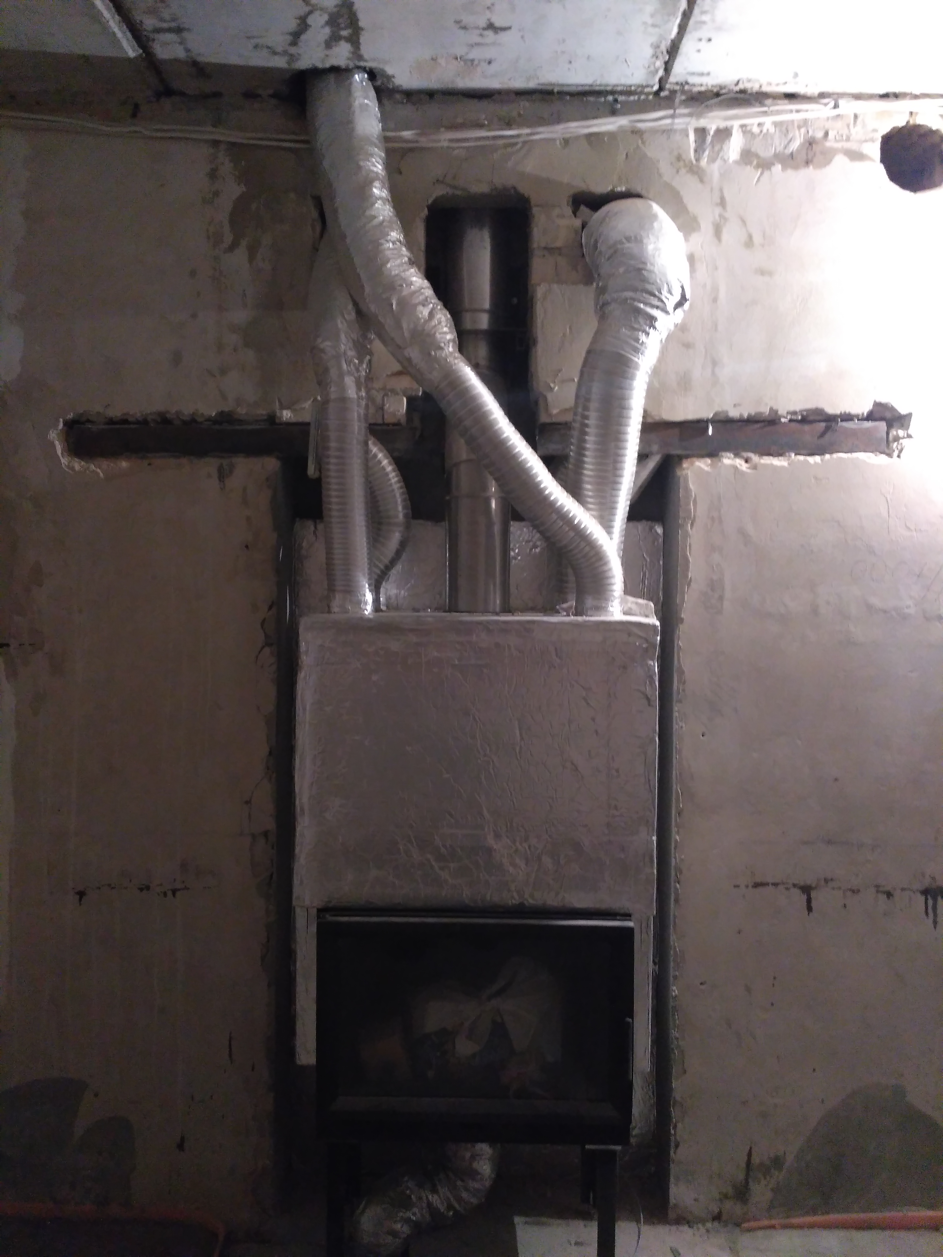 Ось цей камінь і труба якою я ганяю повітря по кімнатам. Просто хочу це все впорядкувати і автоматизувати. 😀 Там всього то треба метрів 12 повітроводів прокласти.
