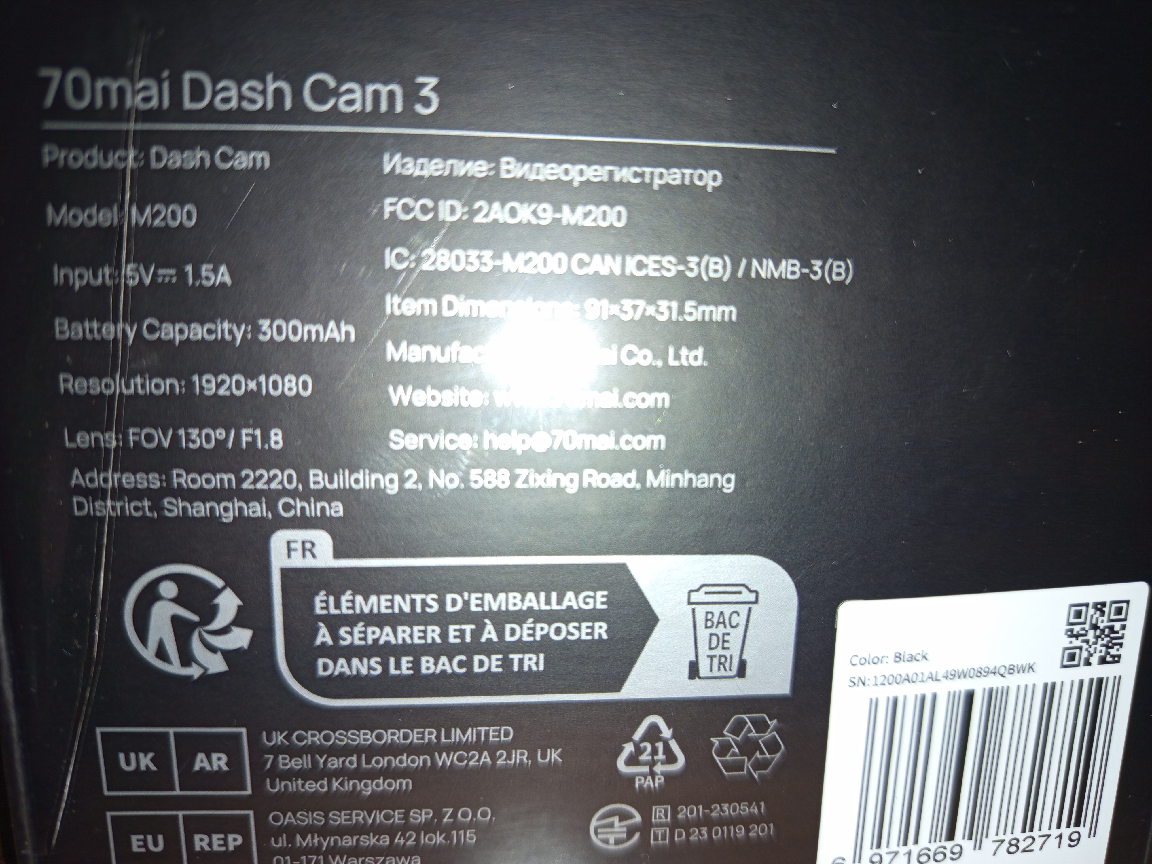 Re: Відеореєстратор на халяву новий 70mai Dash Cam 3 M200