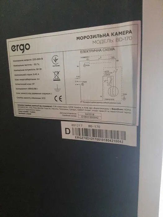 Продам морозильну камеру ERGO BD-170. Ціна 7500 грн В чудовому стані. Працювала в нас біля року. З початку війни не використовуємо. Економна. Загальний об'єм 255 л Система охолодження морозильної камери Статична Корисний об'єм 225 Клас енергоспоживання A+ Тип керування Механічне Річні витрати електроенергії 256 кВт*рік Потужність заморожування 11 кг/24 год Автономне збереження холоду 18 год Кліматичний клас T (від +18 до +43С) Холодоагент R600a Кількість ящиків/кошиків 7 Колір Білий Габарити (ВхШхГ) 170х60х60 см Вага 59 кг Ширина, см 60 Глибина, см 60 Рівень шуму, дБ 41 є пару маленьких нюансів зовнішніх (царапинка, вмятина) не на видному місці. Морозилку таку купували новою з складу, з такими нюансами. Не впливає ні на що. Технікою будете задоволені.