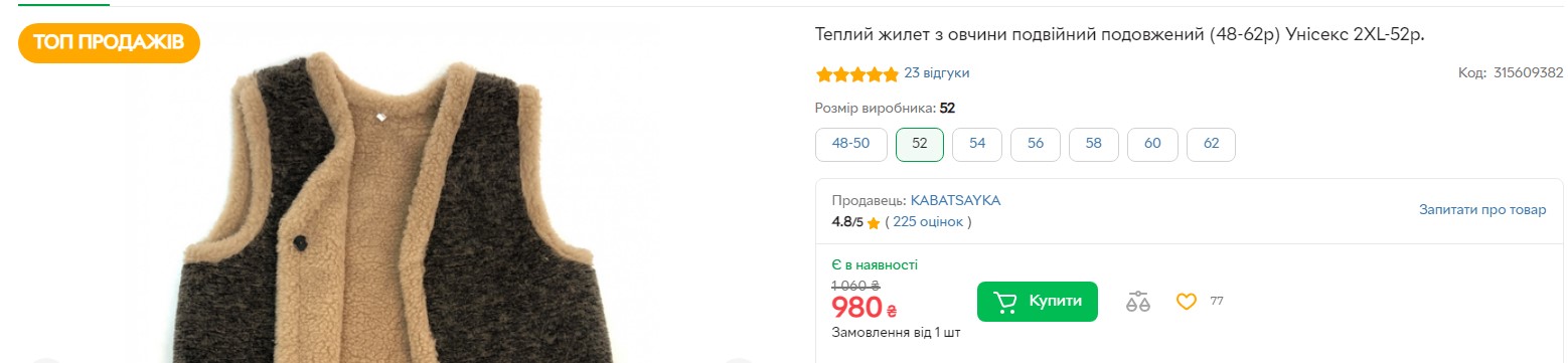 Так, скоріш за все така жилетка буде дорожча за овчину.. Тіп такого