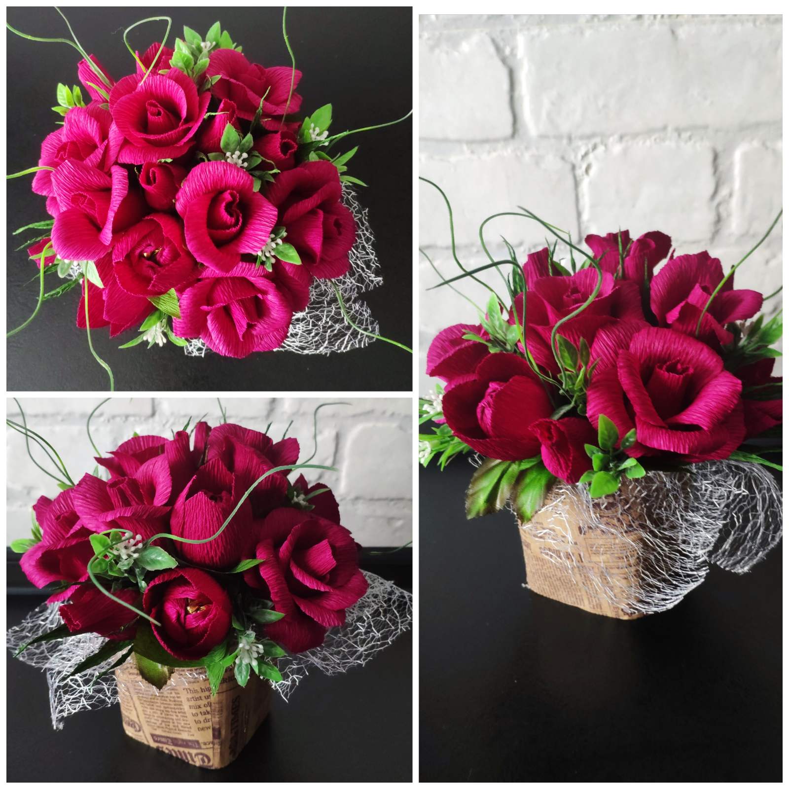 Трохи не зрозумів - квіти паперові, пластикові? Цукерки де, в бутоні, чи в чому?