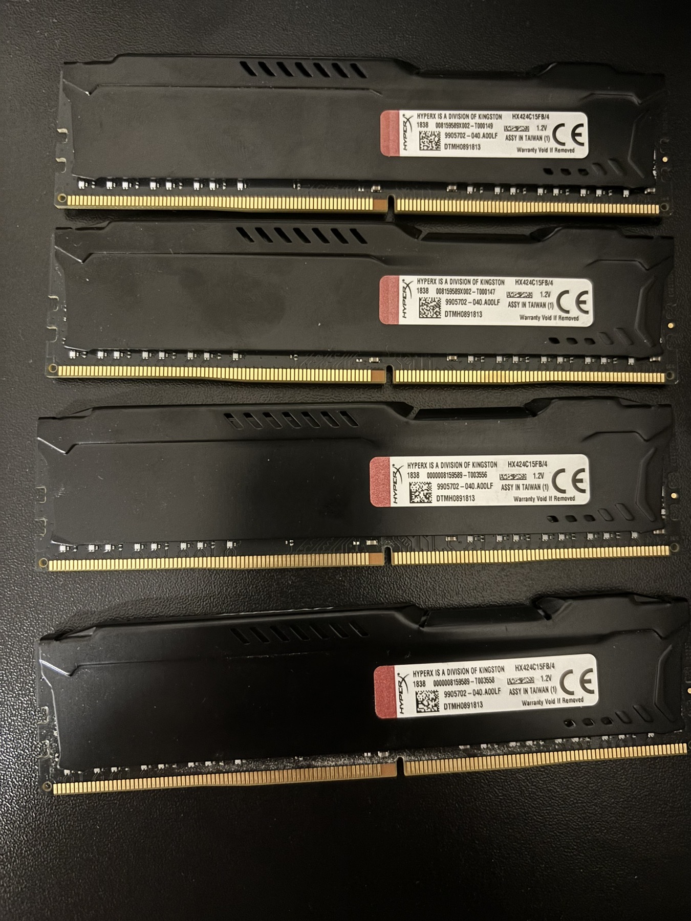 При розборі тумбочкі була знайдена стара оперативка і декілька старого комп'ютерного хламу Оператівка DDR4 Fury HyperX 16Gb (4 планки по 4Gb) модель HX424C15FB/4, знімалась рабоча 100% опис тут https://www.kingston.com/datasheets/HX424C15FB_4.pdf ціна - 700грн за все