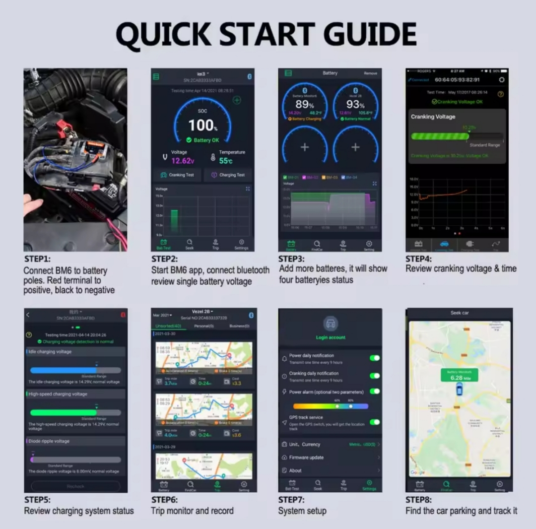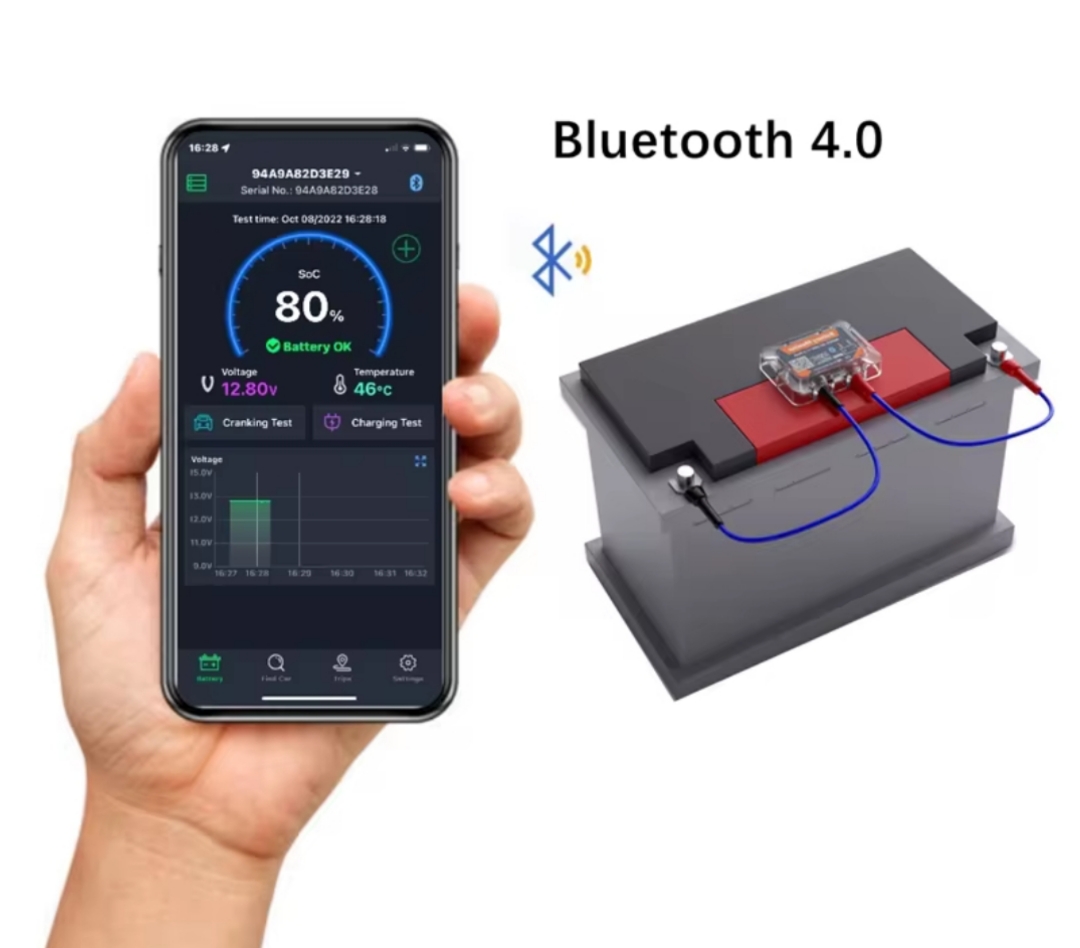 Данный тестер мониторит состояние аккумуляторов всех типов по Блютусу и полностью его диагностирует. Может работать: - у вас в доме, передавая данные на телефон в радиусе 10м - на автомобиле, крепится из комплекта скотчем к аккумулятору. Передает огромный массив данных на ваш телефон, когда вы подходите к авто. Строит графики заряда, разряда, и просадки при работе стартера. Очень удобная штука для автомобиля! - на катере, автодоме, и т.д. К одному приложению в телефоне можно подвязать до 4 данных тестеров. Например, если у вас несколько авто, или несколько аккумуляторов в доме. Умеет: - показывать процент заряда-разряда - строить удобные графики - измеряет температуру - диагностирует работу аккумулятора под нагрузкой (стартер), строит наглядный график - работает как со свинцовыми, так и с литиевыми аккумуляторами - присылает сообщения в случае разряда - ведет лог ваших путешествий - потребление мизерное, около 1мА