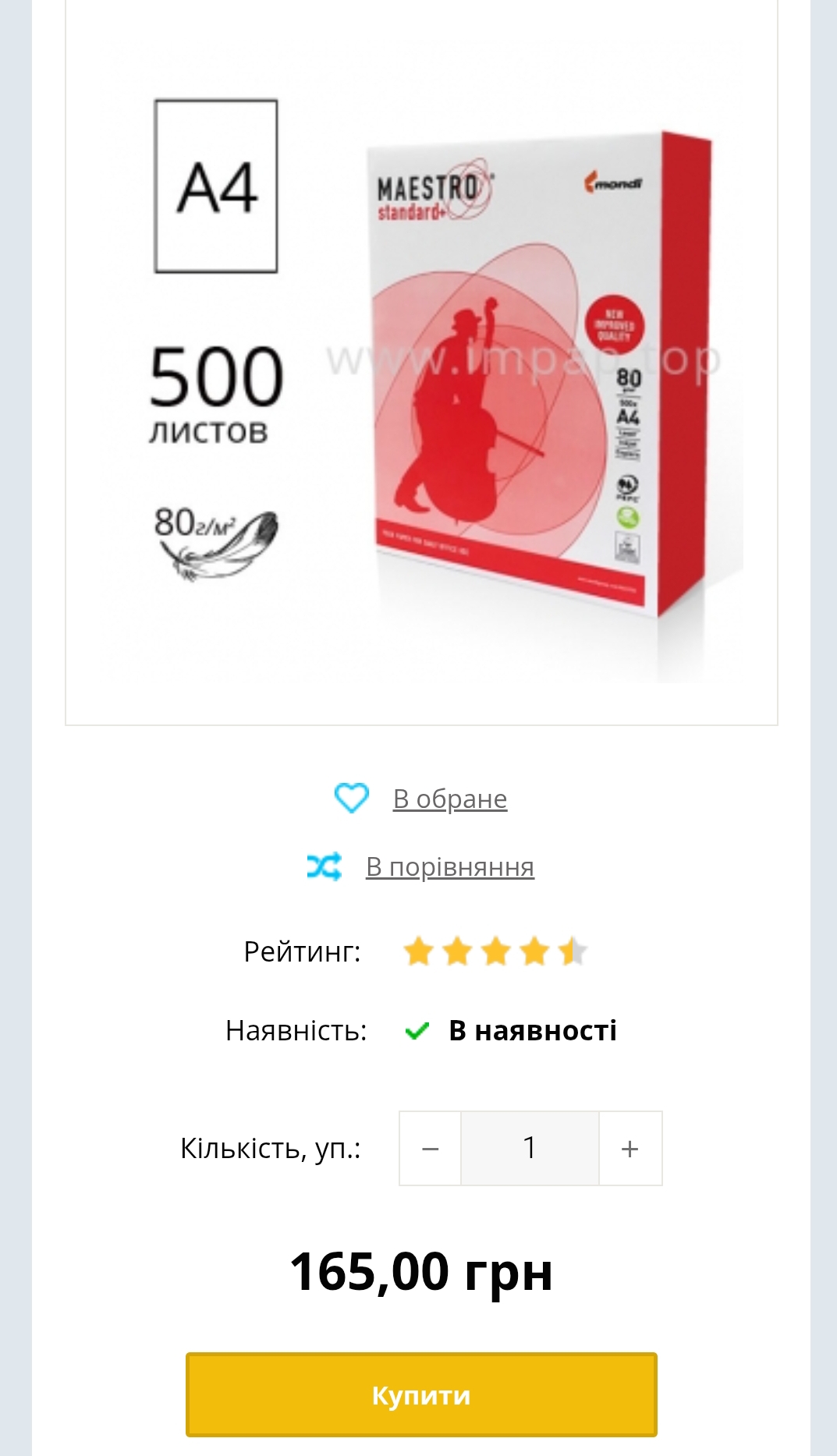 під свята знижка 170грн за А4, 80 г/м2, 500 аркушів