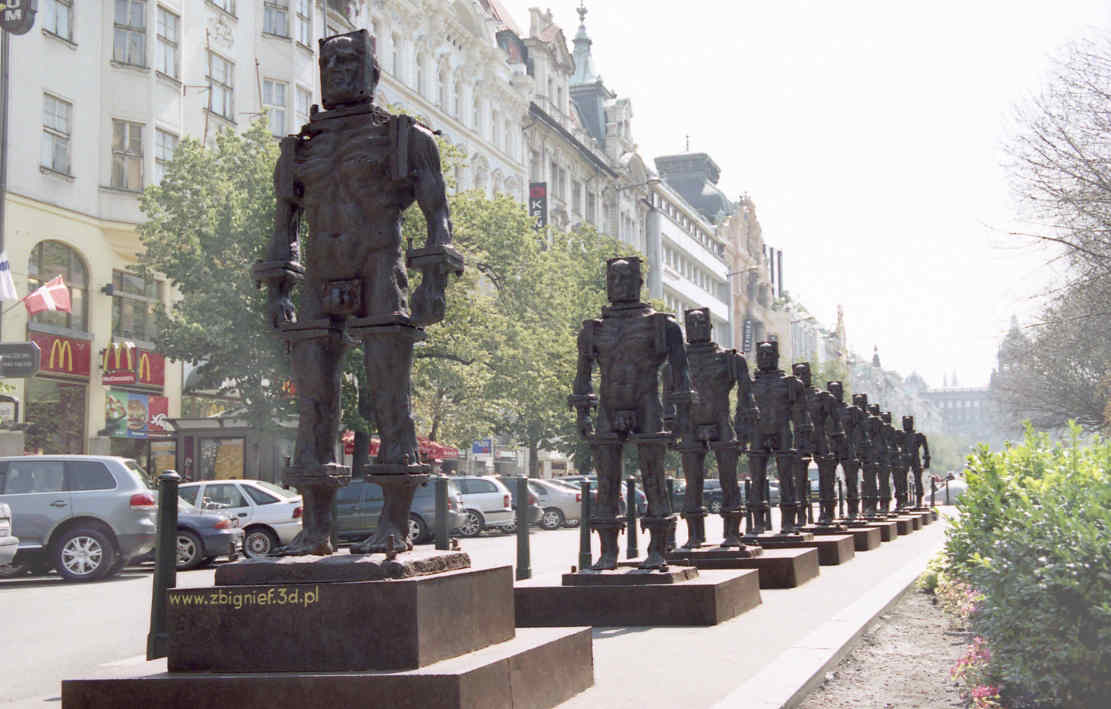 Просматривал отснятые в путешествиях пленки и решил выложить снимки не очень обычных памятников/ скульптур. Число ограничил десятью, хотя их конечно, больше. Может что-то подобное есть и в ваших архивах. Смотрите. Это - композиция польского мастера Збигнева Францкевича на Gallery art factory 2005 в Праге