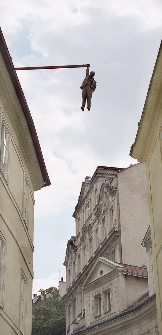 Памятник Фрейду на улице Гусовой в Праге. Олицетворяет оторванность интеллигенции от народа.