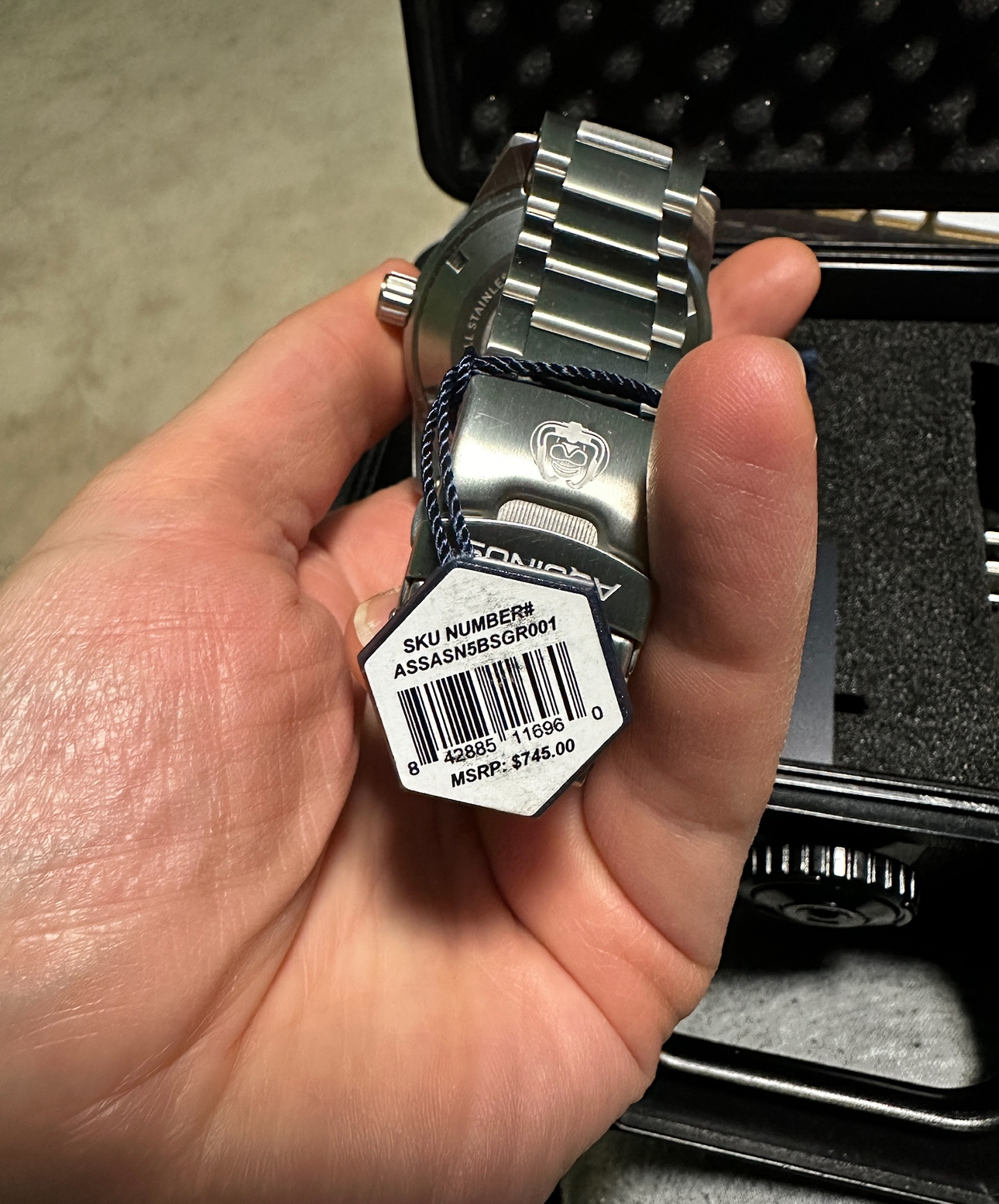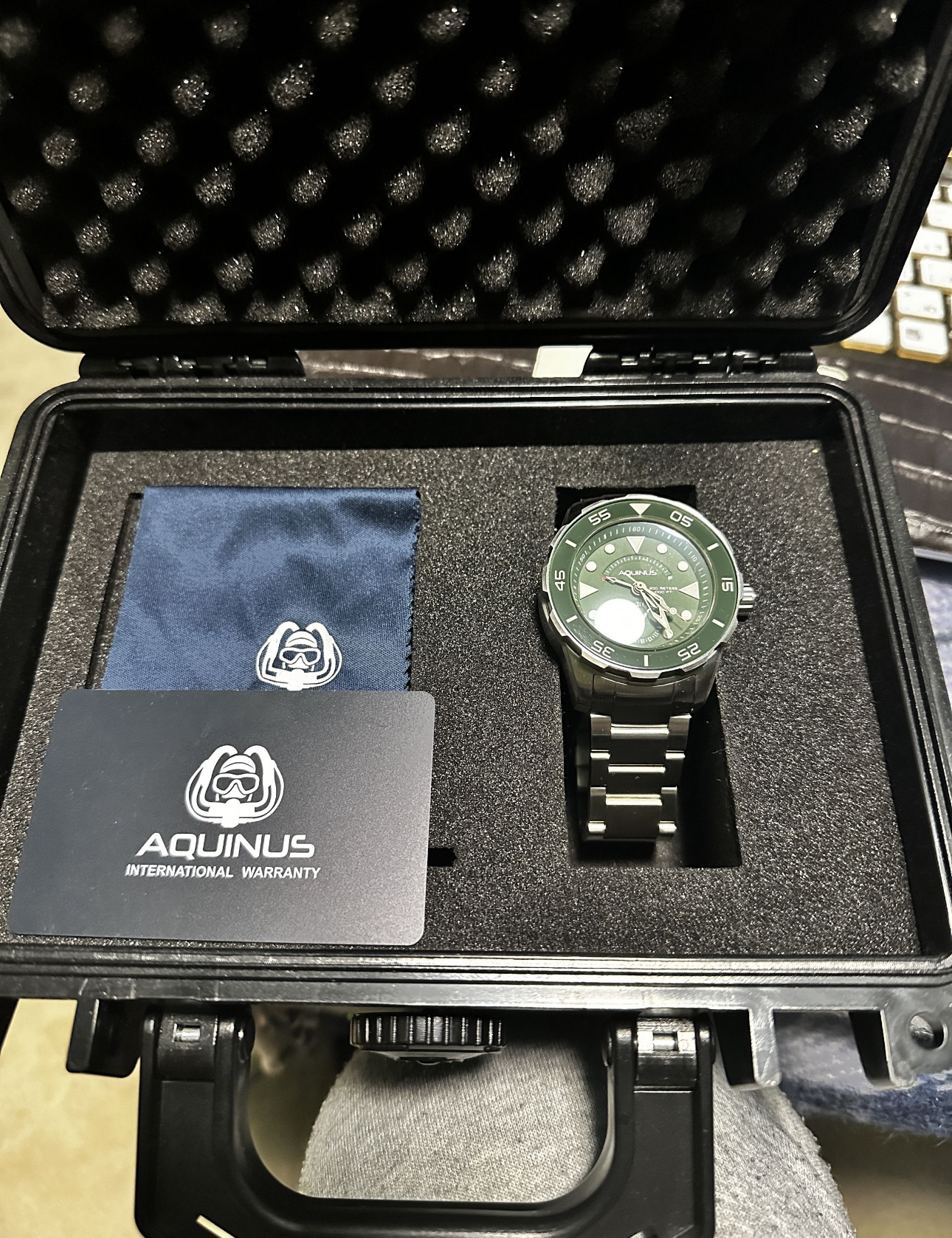 Aquinus Ruggada ASSASN5BSGR001 має матовий сріблясто-зелений циферблат, матові сріблясті індекси та стрілки з білим люмінесцентним покриттям. Круглий матовий корпус виготовлений із нержавіючої сталі, а матовий зелений скляний безель із швейцарським суперлюмінесцентним покриттям. Він має матову сріблясту головку, гелієвий випускний клапан і триланковий браслет з нержавіючої сталі. Він оснащений автоматичним механізмом NE57.
