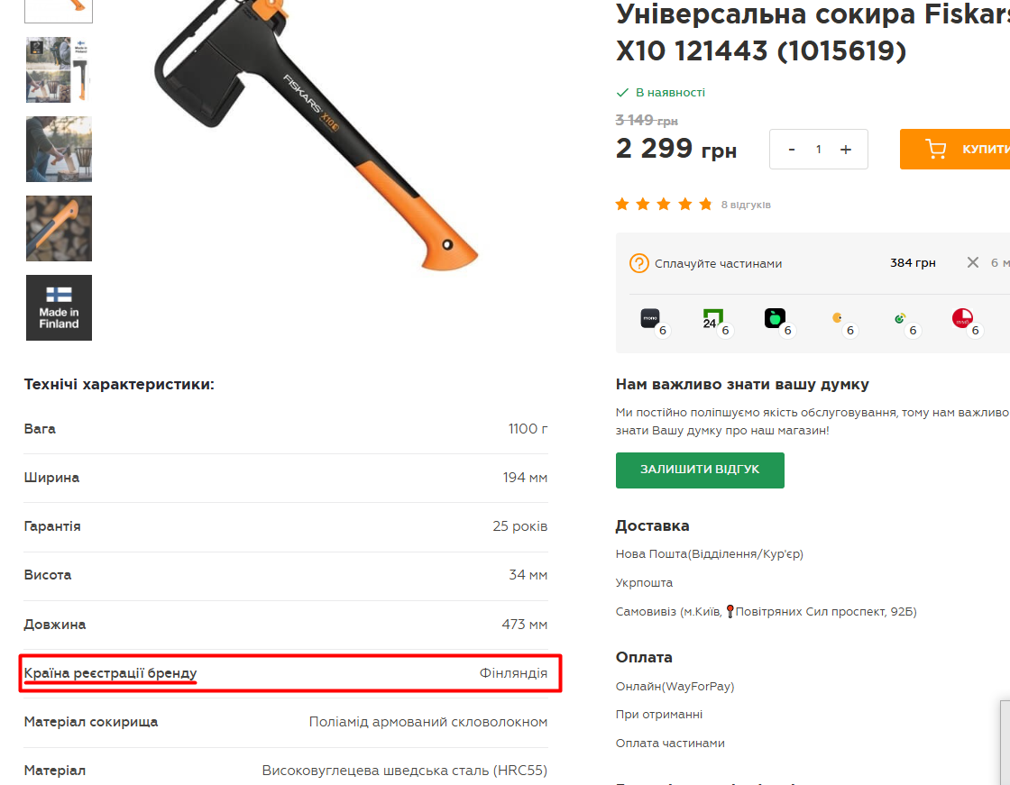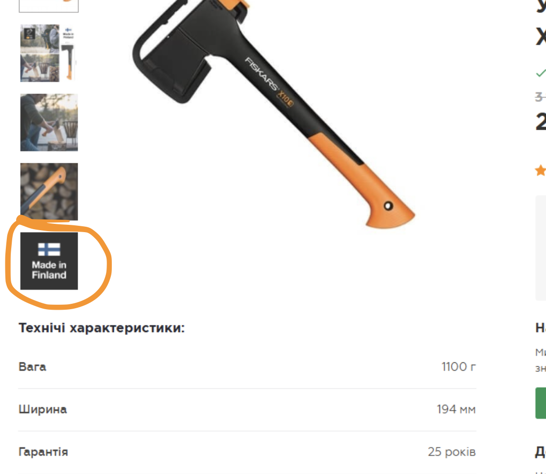 на сокирці написано фінланд, на сайті виробника також пишуть, що