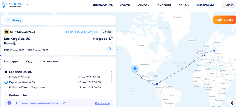 Машина завантажена, є букінг і номер контейнера MSBU5277583 випливає 18.12.