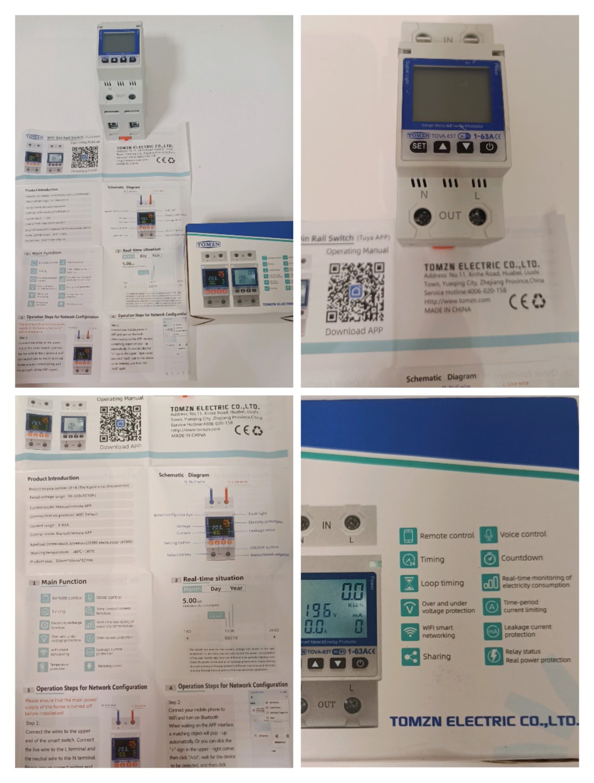 Номінальна напруга: 80–300В Частота: 50/60 Гц Номінальний струм: до 63А Тип мережі: L+N, 110/220V AC Керування: TUYA / Smartlife (iOS, Android) Захисти: перенапруга, зниження напруги, перевантаження, струм витоку, температура Споживана потужність: < 2 Вт