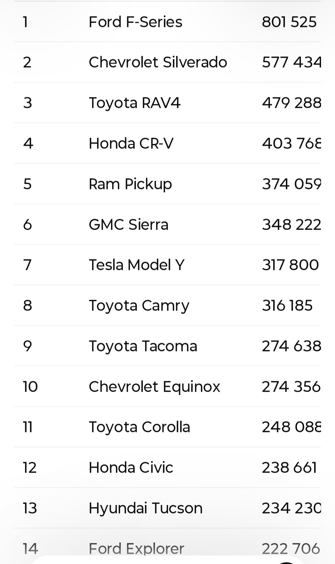 та я топ знаю в сша...все зрозуміло - пікапи, рав4, кемрі, корола і т.п. все як завжди. Єдине, що мене дивує - 10 місце. дупля не відстрелюю чому його беруть стільки