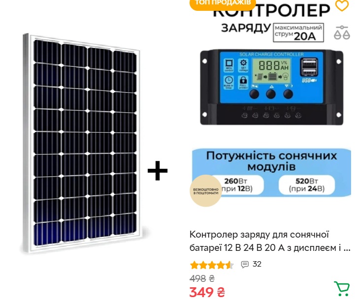 І є багато сонячних контролерів по 200-300 грн. Але для них потрібен акумулятор.