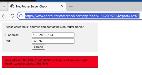 Начебто встановлюю, але якщо пройти на його тест https://www.neorouter.com/checkport.php?addr=185.209.57.64&port=32976 не працює. Звісно що це ІР роутера. Можливо в його налаштуваннях я не можу зрозуміти. Хоча скоріше так і є. Я на своєму роутері жодного разу не зміг зробити проброс портів. Хто шарить велкам.