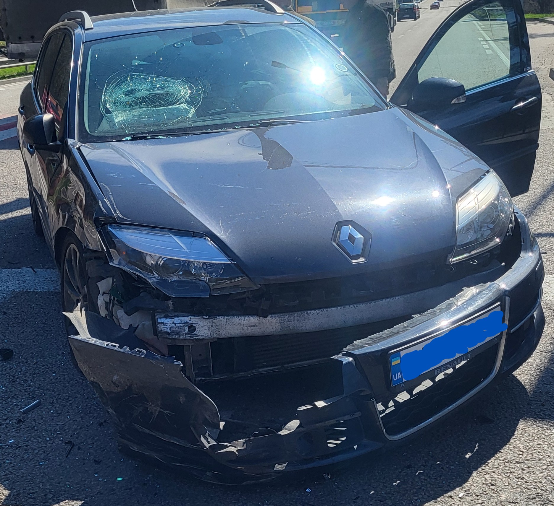 Що зараз: двигун не запускається (починає крутити, але не запускається, можливо, так як купа помилок вистрибує. Помилки – не по двигуну, а по освітленню). Переднє праве колесо – повністю спущена шина (не знаю, чи є поріз чи деформовано диск) і трішки вивернуте (нижній край, відносно верхнього). Колесо обертається, руль повертається. З місця ДТП, машину забирав евакуатором. Територіально авто – в пром зоні, на Борщагівці. Зважаючи на вартість транспортування авто, буду шукати варіанти ремонту, на Борщагівці, чи, відносно недалеко.