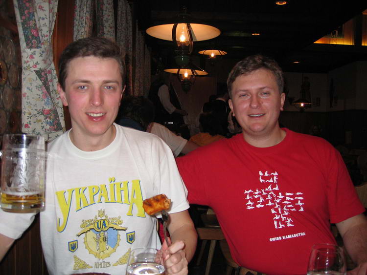 поедание колбасок под швейцарское пиво Cardinal и национальную живую музыку (музыканты на заднем плане)