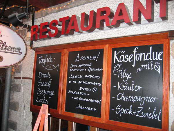 на фото - завлекательная реклама для "руссо-туристо" на одном из ресторанчиков при мини-отеле