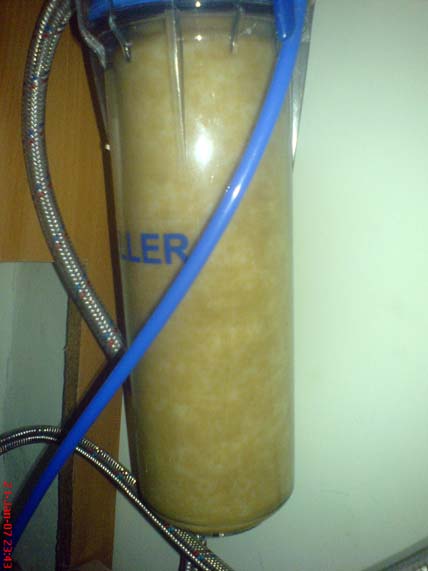 Как вариант - перед этим крутым фильтром поставить дешевенький фильтр тонкой очистки с 1 фильтрующим элементом. Такие элементы продаются по 15-20 гривен и их не жалко менять каждый месяц. Думаю что они продлят срок работы более дорогих элементов "осмосного" фильтра