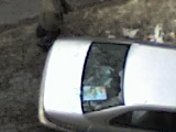 Сход снега с крышы.... и служебный саманд лишился заднего стекла:
