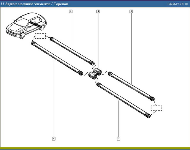 Издержки перевода переводчик не очень разбирался в том, что он переводит. Кстати, компактность торсионной подвески - это IMHO скорее сопутствующий фактор. Вот, у R25 какой здоровый багажник - а ведь там рычажная подвеска... Схемка прилагается. Как раз для Clio I, двухторсионная четырехтяжная (по классификации некоторых неграмотных механиков четырехторсионная) задняя балка. Заметь, никаких игольчатых подщипников, посредине торсион.