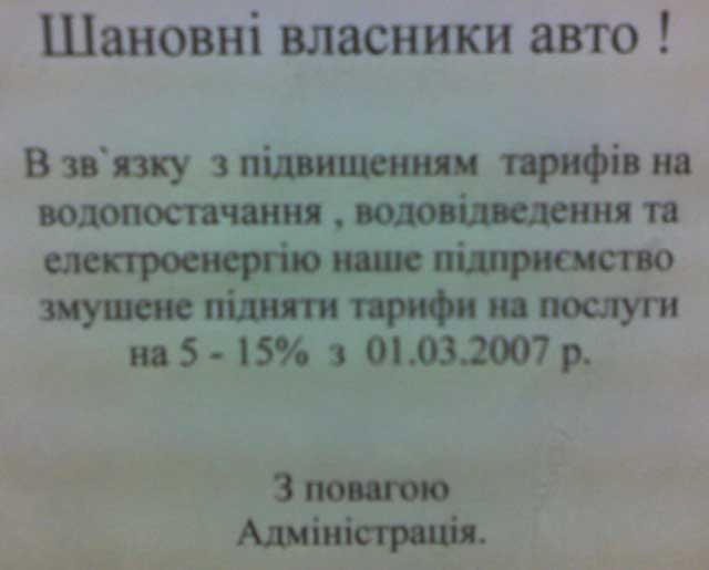 На петрівці автомийка "360Г". В неділю помили "всього" за 70 грн. Прочекав 1.5 години а потім вони мені оголосили ціну Комплексна (кузов безконтактною з воскуванням, пилосос, протерають вікна, чистять і натирають пластик в салоні). Раніше було 50. Два тижні назад вже 55. А зараз вже 70!!! Причому написали (див. фото), що піднімають ціни на 5...15% а реально на 27% підняли! А якість залишилась та ж - доводиться після "все готово" обходити машинку і тикати носом мийників. В минулий раз пів заднього бампера взагалі не помили Навіть незнаю чи буду у них ще митись...