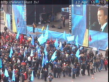 Гы-гы, вчерась по ящику показывали сюжетик забойный: майдан пустой, машинко по Крещатику ездиют в абсолютно штатном режиме, но сцена стоИт, причем на сцене работают экраны, с которых на полную громкость транслируется запись майдана двух-трехдневной давности. Т.е. я так понял прыхыльныки Ахматова по нечетным числам против перевыборов, а по четным - не возражают. Так шо кому на Майдан, планируйте, исходя из этого.