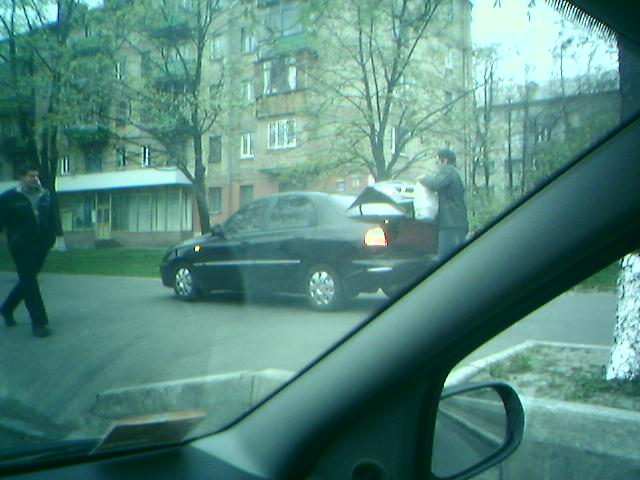 На фотке конечно может и не видно... но рассказываю. Стою на Гагарина, в правом ряду, и тут как уже стало там модно начинается движняк по тратуару.. Уроды, что сказать... Люди идти нормально не могут.. и тут из переулка выходит молодая пара. Выходят я так понял с тем, чтобы словить грача.. Пропускают машины для того, чтобы пройти по тротуару до дороги. Просто перейти 2 метра.. не могут. Их не пропускает поток машин. Но потом... Зачем идти до дороги, если она уже стоит на импровизированной дороге?? Девушка поднимает руку, и тут же на тратуаре ловит машину!!! Сходу. Сервис или идиотизм? Ланос останавливается.. Они договариваются о цене, она садится на переднее сиденье, мужик кладет сумки в багажник, потом тоже садится, и они уезжают. Сзади все это время стояла Камря, и покорно ждала.. как и все остальные дебилы за ней.... (извините, но иначе я их назвать не могу)
