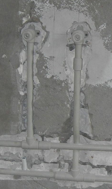 делать будут полипропиленом. от окончания ПП труб до смесителя можно положить МПЛ, но я что-то на него не видел штуцеров для подключения к смесителю, да и даже если резьбовой фитинг то их два там просто не поместится, а обжимной надо искать.