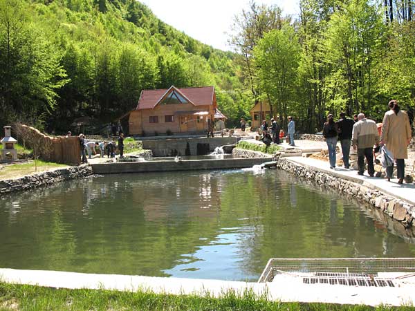 Итак комплекс для активного и не очень отдыха "Воеводино" расположен в живописной долине, со всех сторон защищенной горами. На майские было прохладно, особенно на холодном ветру, поэтому отсутствие ветра в долине стало огромным плюсом. Ехать туда так: Из Ужгорода по трассе на Перечин, далее поворачиваем на Сiмер ,Турьи Ремети,Раково и прямо у указателя на белом фоне "Турья Пасека" ответвляется узенькая асфальтовая дорога - по ней до самого конца (5 Км где то) и вы на месте. На территории комплекса есть масса одноэтажных миниотелей, несколько ресторанов, сувенирная лавка, площадки для тенниса и минигольфа, дартца, волейбола, детские площадки - кароче куча всего. Есть несколько красивых пешеходных маршрутов - место очень живописное. Изюминкой Воеводино является рыбник по разведению Форели, ее там много и разной. Причем можно взять удочку и ловить ее самому (удочку, наживку и ведро для рыбы выдают) - клев шо называется сумасшедший Рекомендую именно нерыбакам (рыбакам будет неинтересно - рыба даже на грузило кидается) По ценам - если выловленную рыбу забераешь себе, то 80 грн/кг. Если рыба не нужна - то 5 грн за каждую пойманную рыбу ( в этом случае форель остается рыбоводу). Пойманную рыбу тут же можно отдать приготовить в любой из ресторанов, а самому пока прогулятс - вам ее приготовят по выбору на гриле или просто поджарят (40 грн). Можно рыбу и не ловить - за вас ее поймают повара но уже по цене 150 грн/кг готового блюда. Так что ловить самому и выгодней и интересней