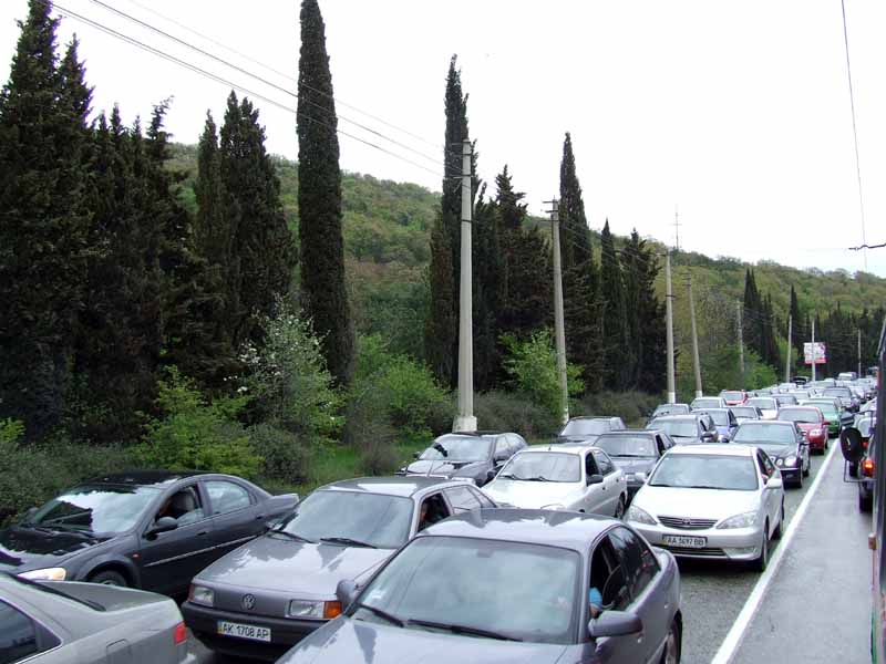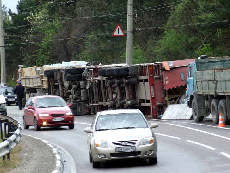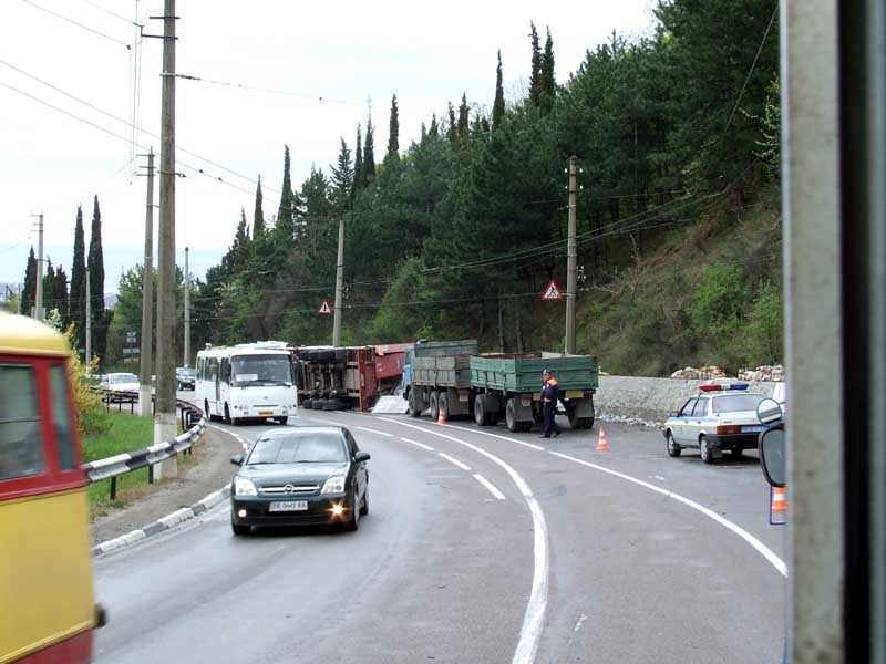 Собственно это уже не проблема, дело было 2-го мая в Крыму. На спуске в сторону Алушты перевернулась фура, груженая соками/лимонадами. В результате образовалась многокилометровая пробка в три ряда.