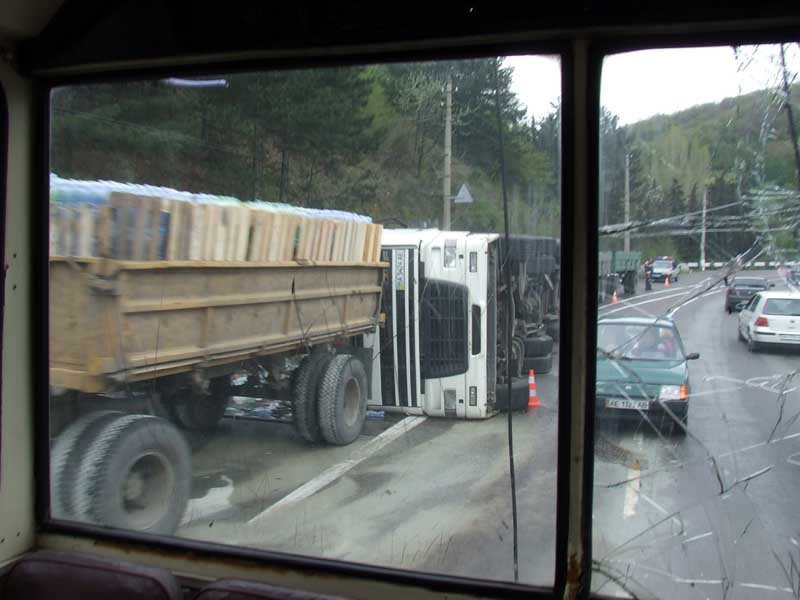 А в прошлом годе практически там же (чутка выше) - с ПИВОМ (вроде Янтарь) навернулася фура.... я в маршрутке мимо проезжал, все порывался попросить водилу притормозить - подхабариться.... такая груда литровых батлов была ... и фотык глубокооо в сумке ...