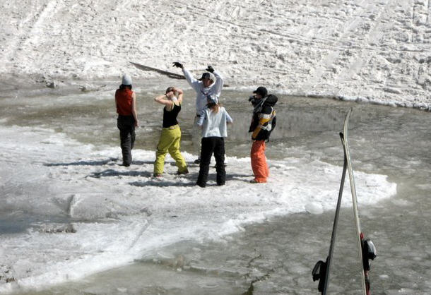 Угу. Просто удивительно, в Альпах на высотах Драгобрата (и даже гораздо выше) снегом и не пахнет, а у нас в низкорослых Карпатах народ катается...