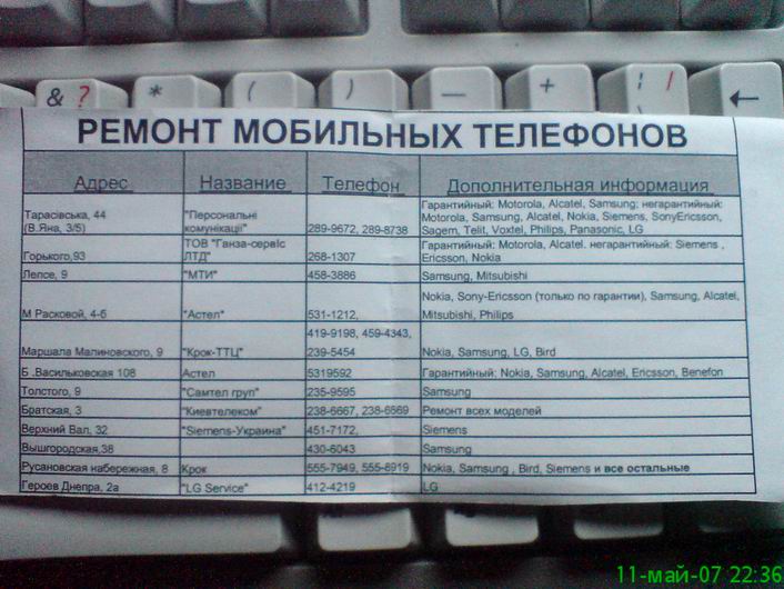 Выбирай. Правда на Куреневке ни одного. И еще один, там где сейчас жены SE - <a href="www.soniko.com.ua" target="_blank">Щусева,10</a>, удобно тем, что по инету можно узнать готовность ремонта. Да, забыл сказать, обязательно сначала прозванивай, а то бывает что именно твою марку там не ремонтируют.