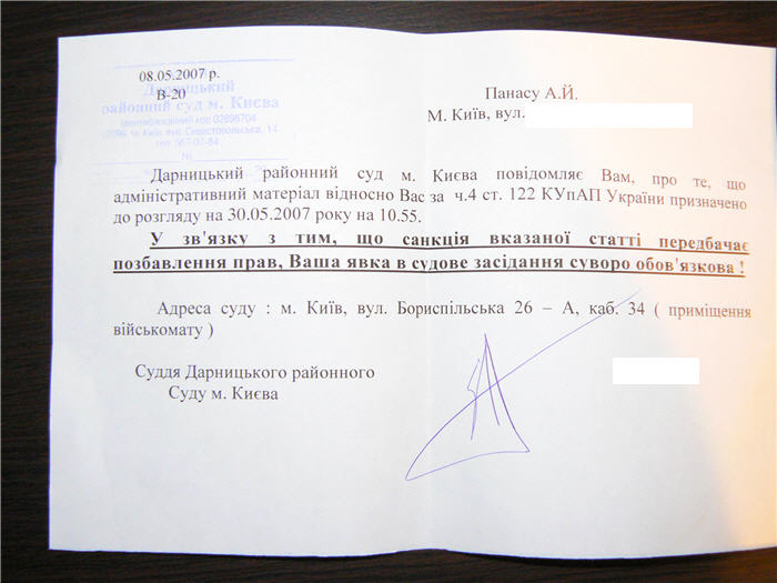 Розгляд в суді призначено на 31 травня 2007 року, а отже 2 місяці уже пройде з моменту скоєння правопорушення. А отже згідно ст.38 КУаПП ст122 ч.4 уже пізно буде накладати стягнення.