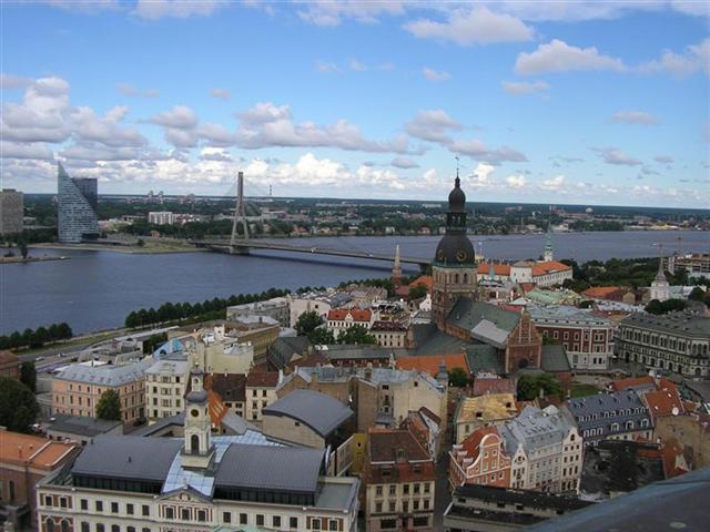 Мда, как все запущенно . Не "Дзинтарс", а "Дзинтари". И не "Домский собор", а башня Святого Петра, в Домском может лифт и есть, в чем я сомневаюсь, но смотровой площадки для туристов точно нет, да и вид с него будет совсем другим, сфоткать вантовый мост и церковь Якобса в таком ракурсе не получится.