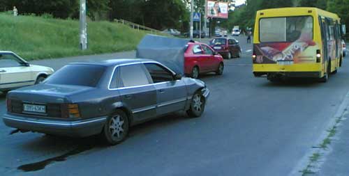 А форду досталось. Маршрутка потом форд утянула на буксире.