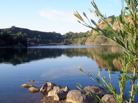 Речка есть, но её не советую, а озеро вполне чистое и рыбы там дофига. Вообще - оазис такой в черте города. Правда туда лучше ездить утром - народа почти нет. А то, что там раньше был карьер, даёт возможность со скал попрыгать.