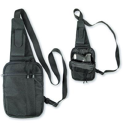 Это сумка фирмы AKAH, Германия. У них есть вариант как ношения такой сумочки на брюшном ремне, так и виде наплечной кобуры.