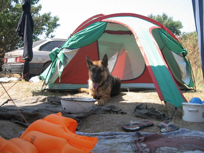 Поездка позади, ехали ночью - собак почти всю дорогу спал ( после воспитательной работы естественно ). Воды не пила вообще - но пару раз настойчиво требовала выпустить её из машины, зачем - не понятно, так как выскакивала из машины, обнюхивала окрестности и прыгала обратно в машину. Восторга как и в прошлый раз - очень любит воду. Пара фоток.