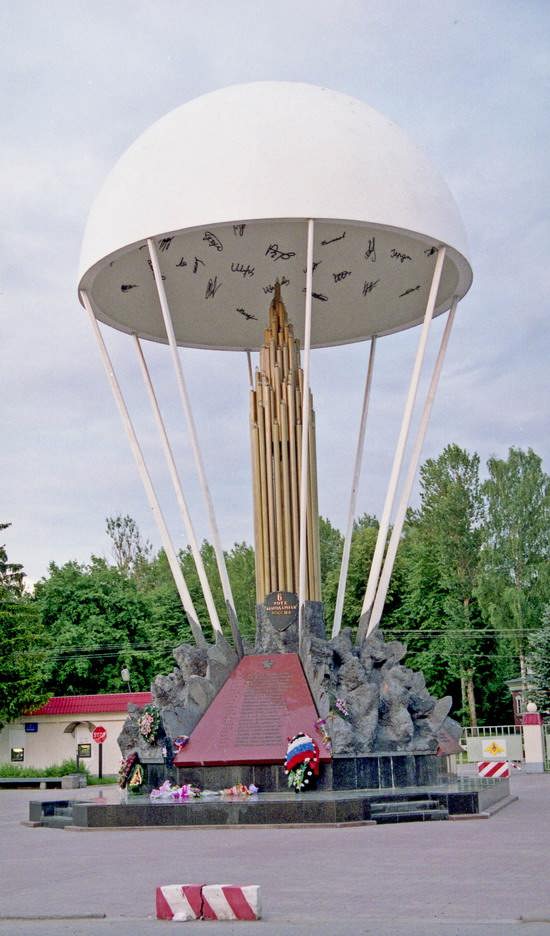 После осмотра Кремля хорошо посидели со старинным приятелем в одном из модных местных ресторанов, поговорили о новостях и жизни. А вот заночевать в гостях уже не рискнули: следующий день – последний из четырехдневного окна, а до Киева еще тысяча километров и две границы. Так что сын, как неупотребивший, сел за руль, и мы двинули на выезд из города. Рядом с трассой завернули к памятнику воинам 6-й роты Псковской десантной дивизии, погибшей в Аргунском ущелье Чечни. В феврале 2000 года девяносто десантников почти сутки держались против боевиков Хаттаба и Басаева, прорывавшихся (и прорвавшихся в итоге) из Чечни в Дагестан. Так и не дождавшись ни помощи, на приказа отступить, почти все десантники погибли. Говорят, что боевики купили у высшего армейского начальства проход в Дагестан, а псковские десантники были нужны для только того, чтобы эта договоренность не стала слишком очевидной . . . От погибших ребят откупились посмертными звездами Героев России, а их их родным дали по новой квартире. Квартиры, правда, оказались без телефона и горячей воды. Ну и поставили вот этот памятник . . .