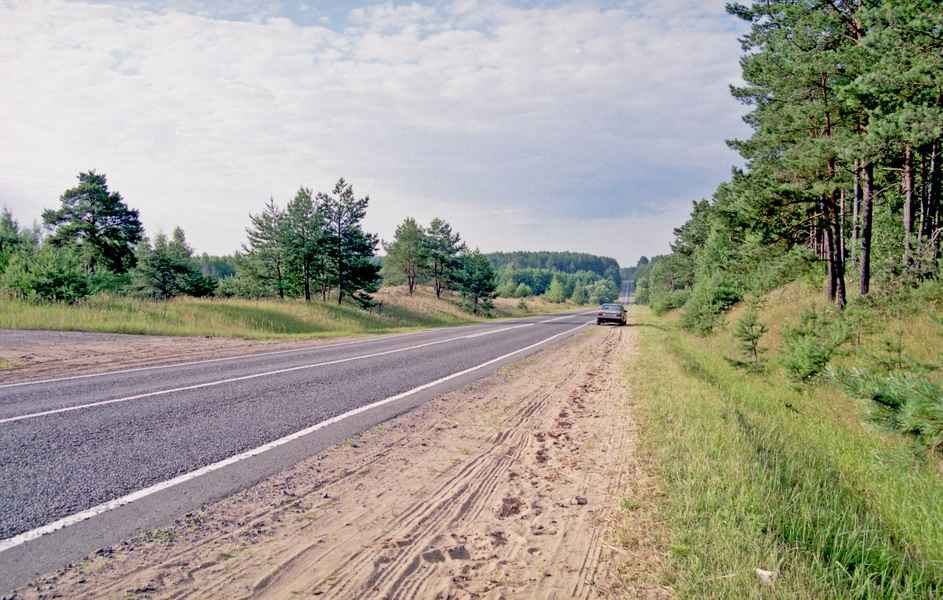 Русско-Белорусская таможня не заняла много времени и на рассвете мы уже катили вот такими лесными дорогами Бацьковщины. Встречных/поперечных машин почти не было, полная свобода, но мы ехали очень аккуратно, не желая связываться с белорусскими гаишниками. На самом деле встретили по дороге всего две засады, замаскированные, правда, по всем правилам партизанского искусства.